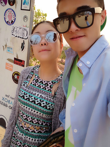 △大峡谷,很多人都等着看日落,我们不等了,趁着还没日落前去完景点~其实那些景点都是沿着一条直路在路边,小小的有特色的建筑物,很多人骑着摩托车停下咔擦照个相又去下个景点了~