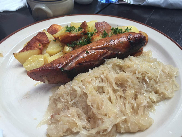 这比前一天在慕尼黑吃的猪蹄好吃多了,白色的酸菜味道不错
