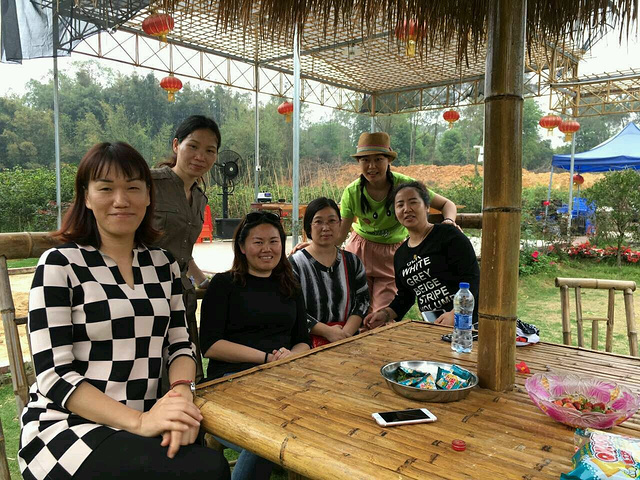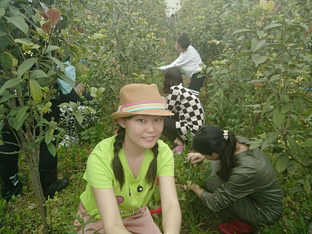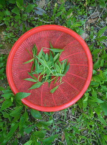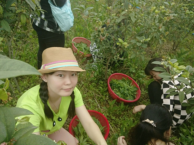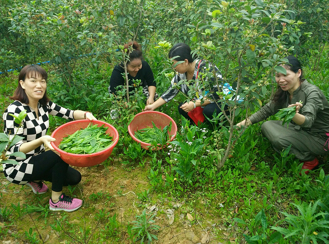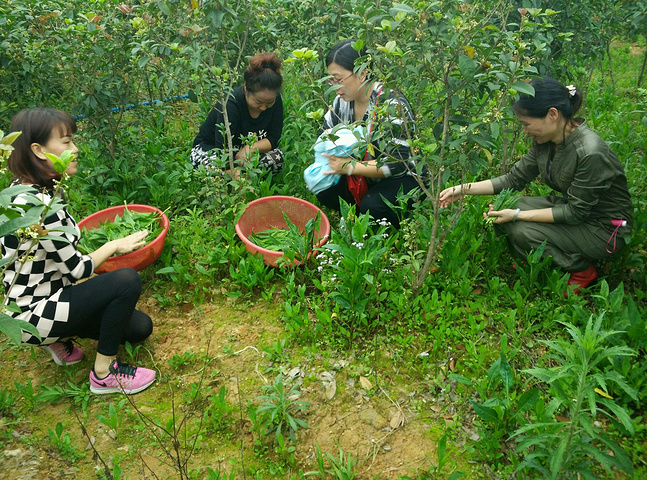我们几个大人在桂花林里摘野生人参果叶,晚饭用来凉拌,很下火