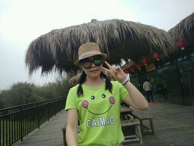 到乡下就得穿的很乡下,看我绿配粉加个草帽