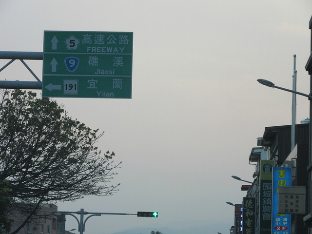 一路的高速,夕阳下的海滨、宜兰沿岸的土地被太阳的余晖照着,成片的田野、农庄铺上配一层鹅黄色的帷幕,星星点点的农舍星罗棋布,点缀着绿色的稻田,海水随着余晖颜色渐渐湛蓝深蓝。偶尔路过的小镇,公路边的路牌不时提醒着苏澳港的距离。就这样,一路的美景,一路的聊天,到了夕阳彻底消失的6点,我们终于到了苏澳港。