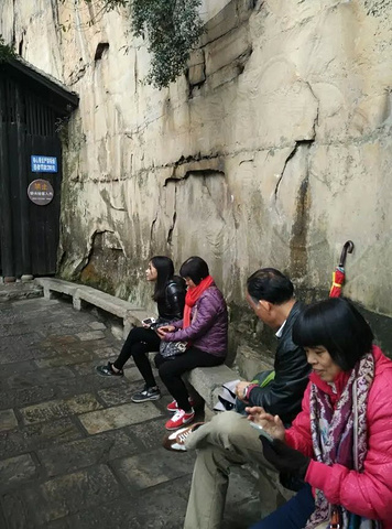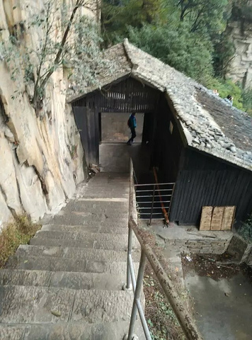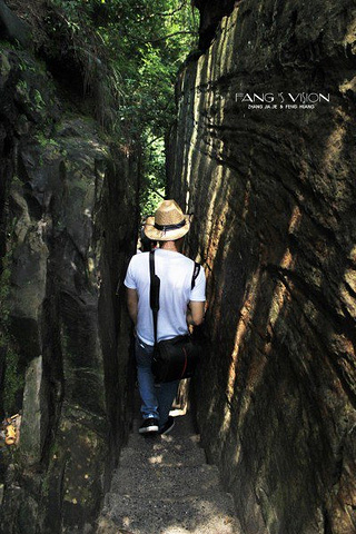 进门就是一段陡峭的石级,便“遭遇”第一关:“一步难行”。小路一个急弯向右,一块尖利的岩石“当仁不让”地突兀而出。人到这里,必须紧贴着岩壁,后仰侧身而过,充分而又有力地锻炼了腰部力量。我想:如果真在此处开战,防守方只要派一个人持刀守候,再多的人也不在话下,进攻者的枪炮都失去了作用,纵有千军万马,恐怕也只能徒唤奈何!