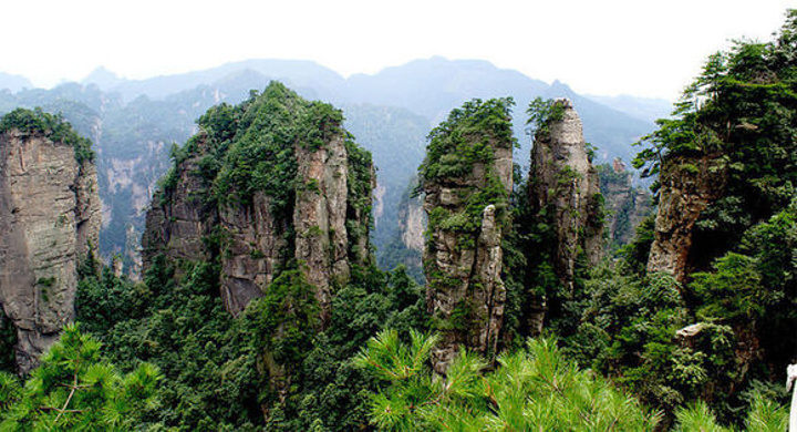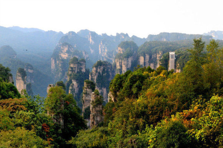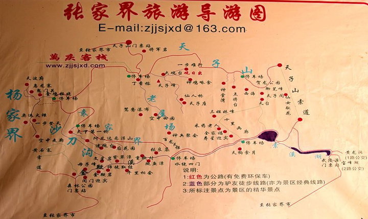 小提示:(天子山索道维修期间,有带老人小孩不方便直接从天子山景区走路下山的,建议游完天子山后,由天子山停车厂坐环保车乘百龙天梯下山,在百龙天梯下面乘坐环保车可以接着游十里画廊景区)