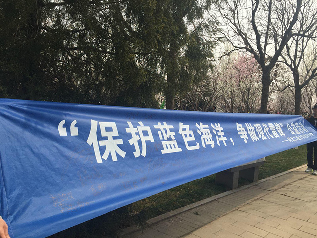正巧,遇到河北工业大学的保护海洋的志愿者签名活动。