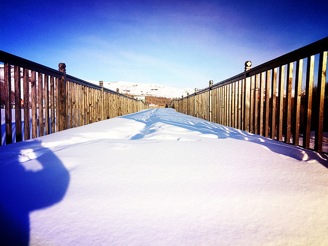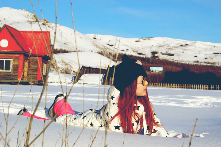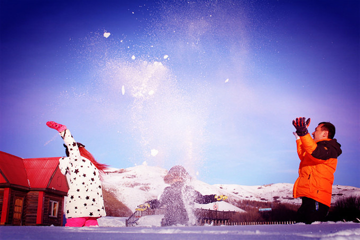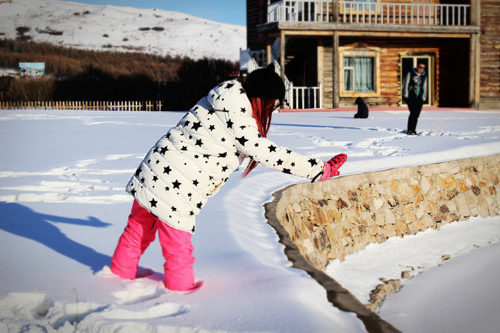 那里是一个叫玫瑰庄园的度假屋,因为现在是旅游淡季,度假屋里空无一人,而门口的一大片空地上积满了厚厚雪,重要的是完全没有被破坏过,就像一大块奶油蛋糕一样呈现在我们面前。我们那个欣喜若狂啊,完全把玫瑰峰抛在脑后,迫不有待的扑进了雪糕地里,发疯似的玩啊,闹啊,后来韩磊说,以后如果他再经过这里时,一定会想起我们一家在这里疯玩的情景的。