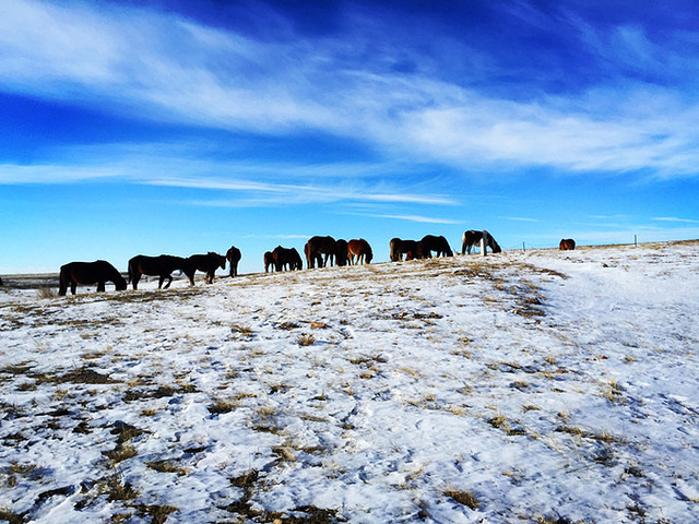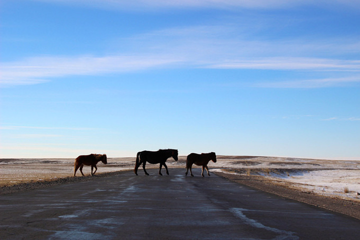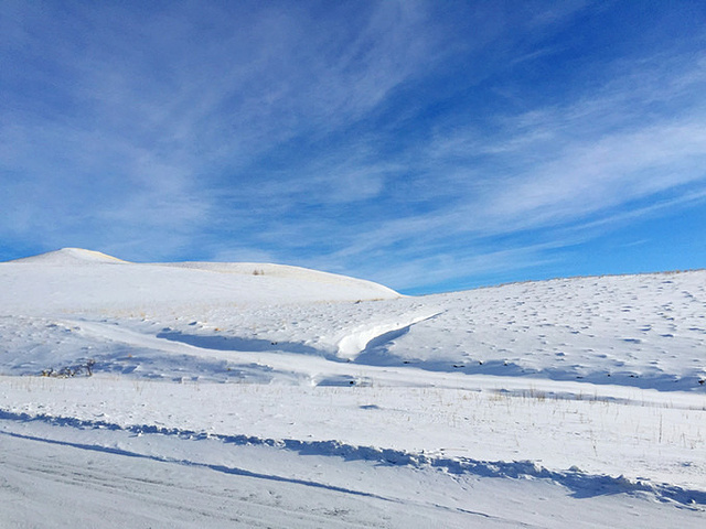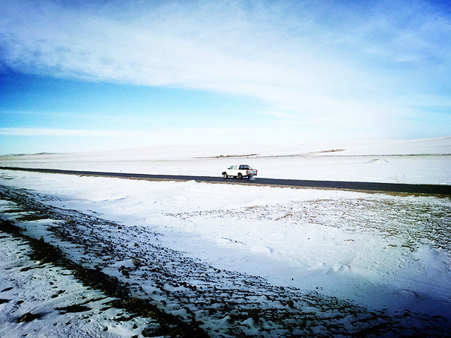 今天一整天的时间都将在路上,陪伴我们的是车内悠扬的蒙古族歌曲,还有车外那一片苍茫,而又宽广无垠的白茫茫草原,还有偶尔出现的动物们。