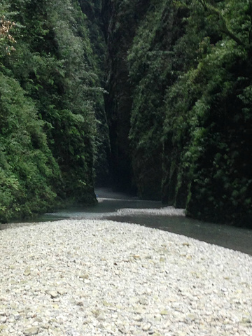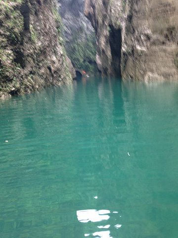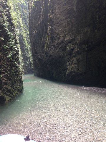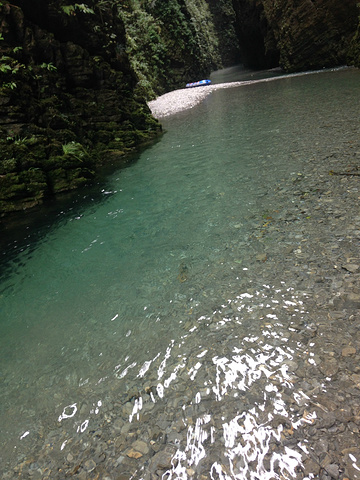 鹤峰屏山峡谷,清澈见底的河上,船行上面尤如飘浮空中。
