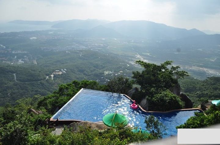 睡到自然醒,中午退了市区的快捷酒店,吃了份抱罗粉,忍不住又吃了一顿清补凉后,直奔亚龙湾华宇度假酒店,市区打车约70元,由于亚龙湾的酒店基本都是三点后才入住,先寄存了行李就直奔热带天堂森林公园去了。华宇打车过去大概是十分钟,门票也是淘宝买的,125元一人,但是如果冲着电影非诚勿扰里面的过江龙索桥去的话,还得多加40元过桥费。。。。
