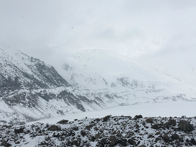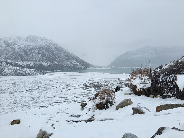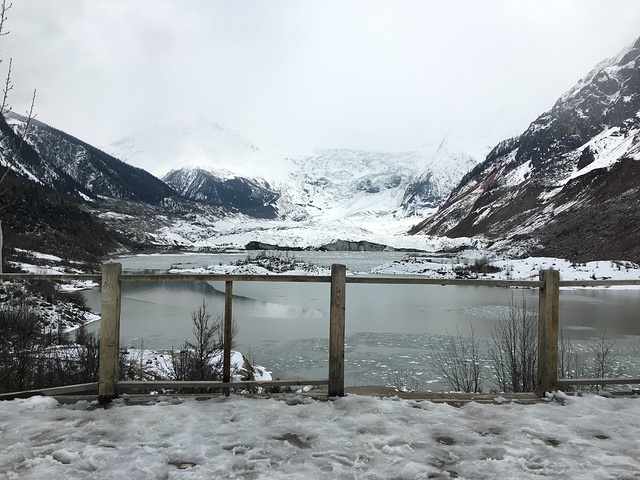 米堆冰川湖面结冰了