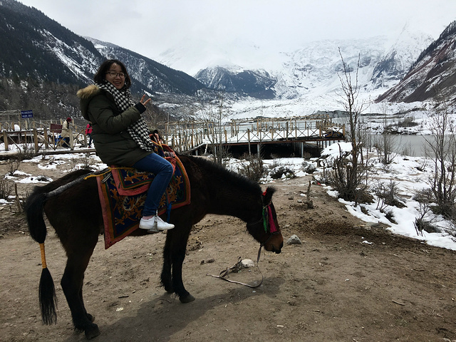 上午在来古村散步2小时(冷到脚趾都冻僵了),中午到达米堆冰川,骑马游览冰川。骑马的项目是100块一次来回。但是到了冰川,牵马的汉子会催促你快点走,这点有些郁闷。