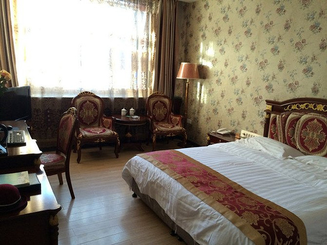 俄罗斯风格的宾馆,窗帘曝光太强看不出,其实是蕾丝花边,蛮有小华丽的异国风情。位置比较繁华,海拉尔本来也很小就是啦。除了小伙伴的房间门锁出了问题打不开修了半天以外,基本满意。