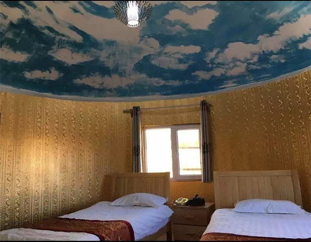 有楼房,也有蒙古包。蒙古包不是在草地上能移动的,而是盖在院子里的,砖砌的,内里布置和现代标间是一样的,卫生间一应俱全,新装了空调不冷。我们住的楼房,还行,有电热水器有空调,睡得很暖和。下图是小伙伴的蒙古包内景,晚上拍星空做前景很棒。
