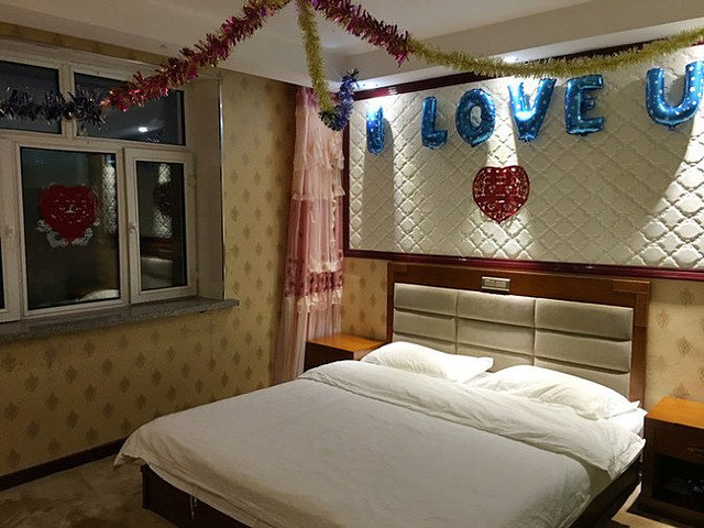 给我们升级了套间,外面多了和房间一样大的客厅,看样子是刚布置成结婚的新房……根河镇不大,酒店位置不在最繁华中心的地方,卫生间还可以,地毯好脏,进去还有霉味,预订还搞来搞去的,所以不推荐。