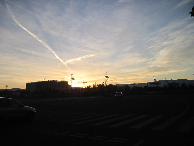 1月22号早上早早起来了,骑到环湖路,看到朝霞跟日出。