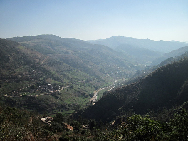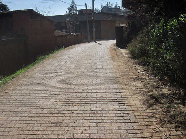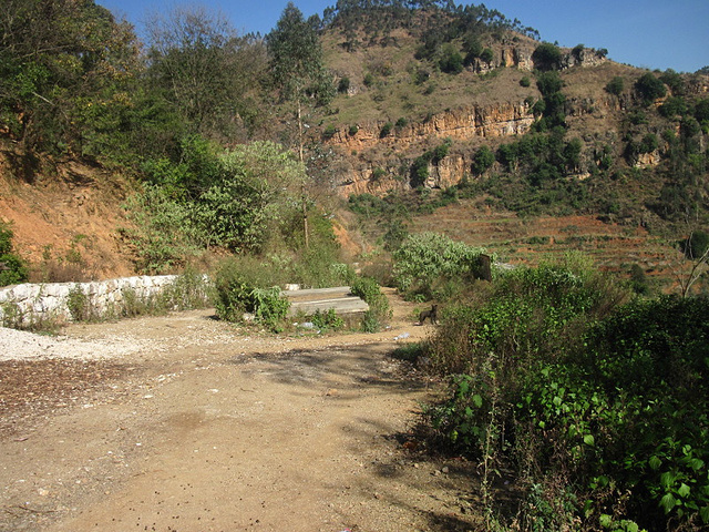 怎么去呢?在车水田村那里问了老乡,告诉我顺着一条水渠走,到岔路口下去一直走就到了。我请一位老奶奶帮忙看车,就往下走了。回来看了地图,一直顺着路走应该也能到,不过就绕远了,而且可能就绕到石林那边,要收费的。