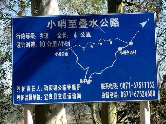 一直爬坡到了小哨,这里离叠水4公里,下面还有块牌子说离大叠水瀑布还有6公里。