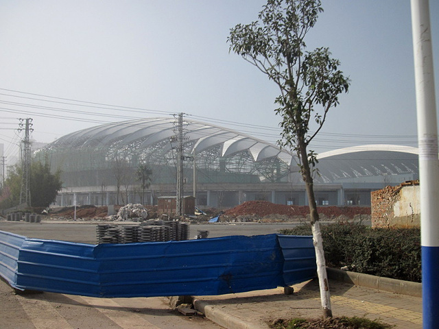 终于到宜良县城了,没想到在入城这里也是蓝围挡,修路。我上次回来还不像这样呢。唉,继续往南羊骑。这是要盖体育馆?