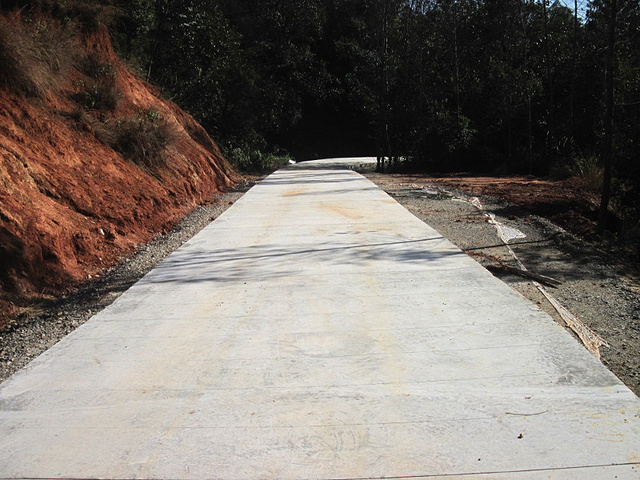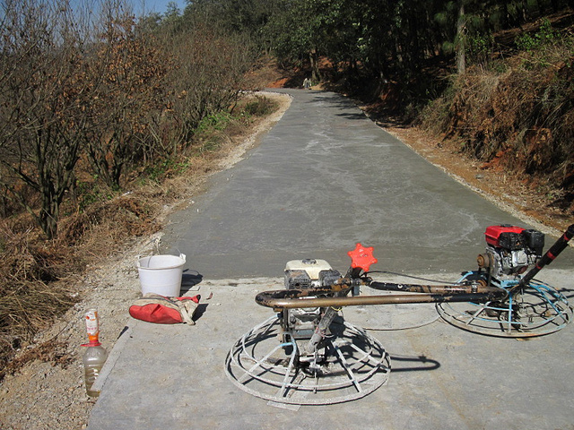 骑了一截,到这里,在修水泥路。汽车是过不去了,我抬车从旁边过,走了几百米,到了铺好的干了的水泥路,接着骑。修路的师傅说还有3公里。