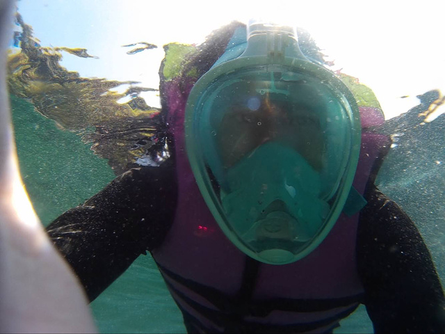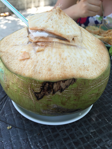 我是走哪都喜欢喝西瓜汁,椰汁的。于是又各来了一份,我的体力不好,玩一会就累了。躺着看老公在那浮潜,像个小孩子一样。