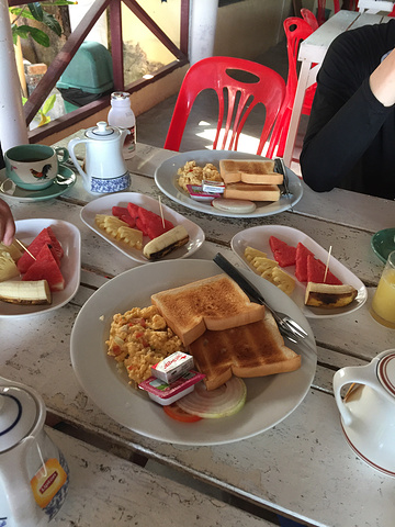 第五天:早上醒的很早,一起来就出去躺着看海,猫咪们起的更早,看到好几只都跑过来我们屋子这边玩耍,我最喜欢猫咪了。酒店含早餐,洗漱后就下去还是在昨天的悬崖餐厅用餐,鲜榨的橘子汁太好喝了。