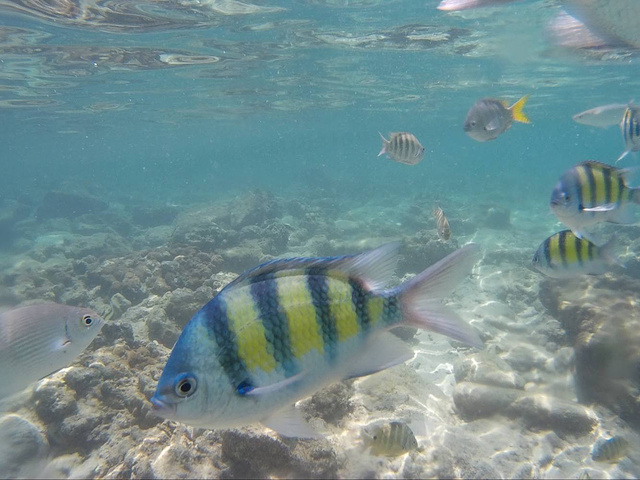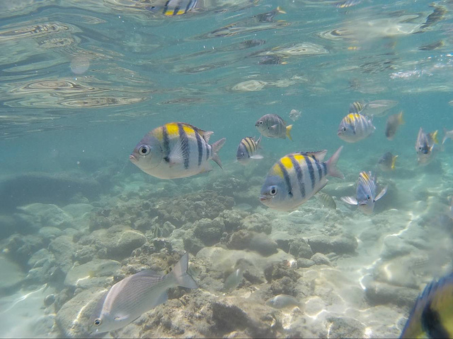 酒店是早上十点就退房,吃完早上后就回屋整理行礼,准备退房后寄存在酒店,带上装备步行去岛对面一头的banraya酒店边的海滩浮潜,那边的海滩是皇帝岛最适合浮潜的,鱼超多,还可以带面包去喂鱼。