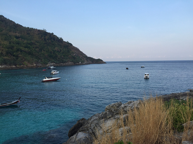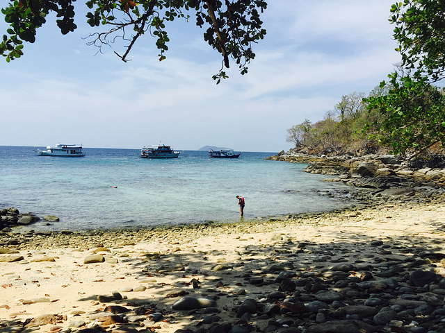和昨天的导游约好的是下午4点来皇帝岛接我们,三点多离开banraya,回到悬崖酒店拿行李,等了一会船才来,以为直接回普吉查龙码头,哪知道还有一次浮潜,反正身上也湿了,那就跟着去呗。今天的浮潜点比昨天好一些,看到的鱼儿更多了,,,不过始终对斯米兰更感兴趣!