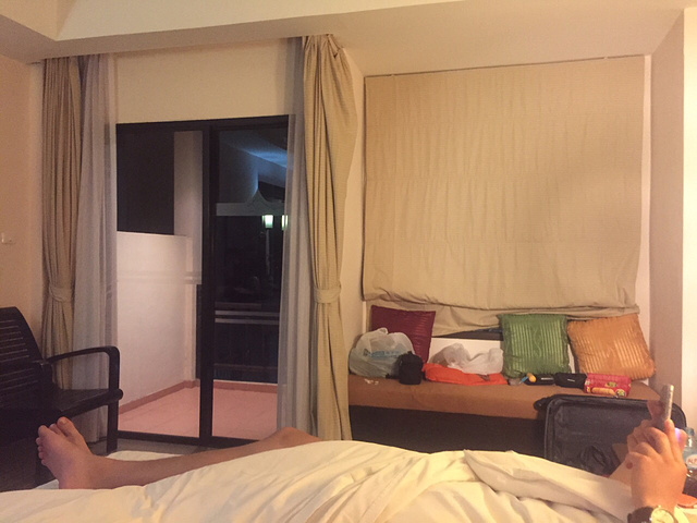 做了半小时的船和四十几分钟的车,终于来到了普吉最热闹的芭东地区,我们定的是里芭东江西冷步行七八分钟的nipa酒店,价格很便宜,房间也不错,很大很干净,虽然没有定泳池景房,但也有一个阳台,可以晒些衣物。