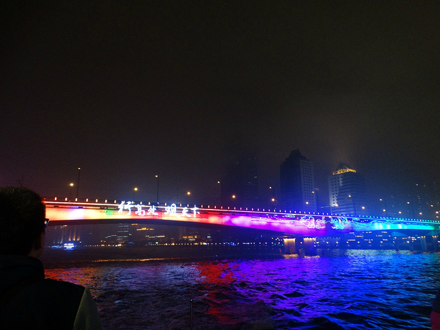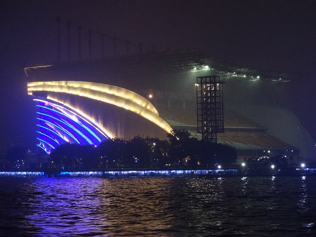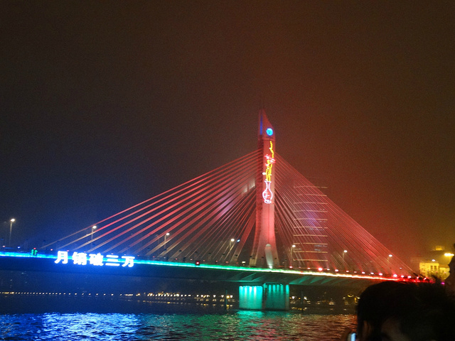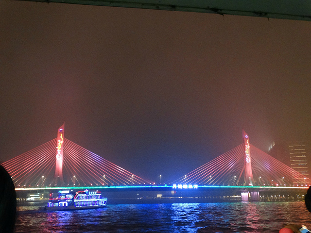 今天的行程是白天逛动物园,下午坐地铁从汉溪站到广州塔,行程大概半个多小时,从广州塔站渡口坐船先游珠江,船票定在7点左右的。因为下雨顶层不开放,工作人员退钱改到了2层,失望啊,只能在甲板上吹吹江风,欣赏夜景了。游览完珠江大概8点左右,然后上广州塔欣赏全广州夜景,倒霉的是下雨能见度低,上去啥也没看着,郁闷死了。这真是计划赶不上变化啊!