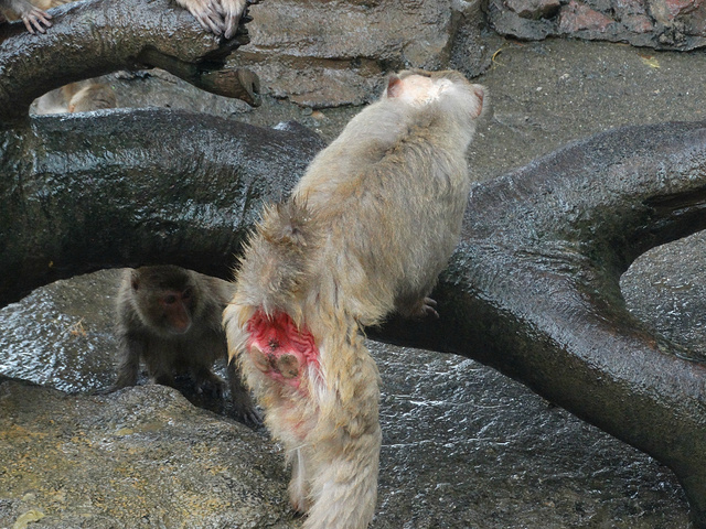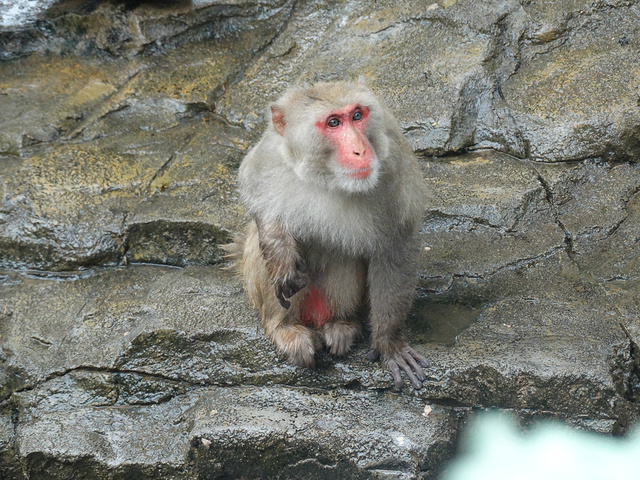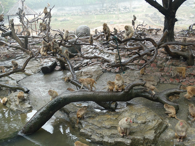 注意这只猴子,尾巴翘着,头顶秃了一块(据说是打架打的),别看长的不咋样,它可是猴王呢,传说中的大湿兄……