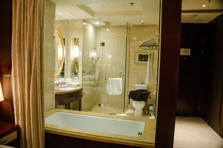 卫生间的浴缸还是蛮不错的,泡澡的时候很赞。只是可惜的是人放满了的话,可能会渗漏出来。