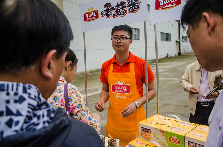 关于香菇的深加工产品,企业有专门的人员为其介绍的哦。看,这位帅哥不厌其烦的为我们介绍呢。