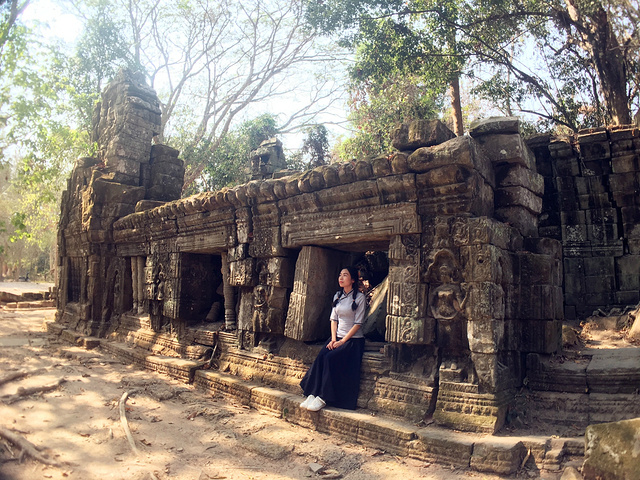 我们在塔普伦寺自拍,这时来了小叔,说你们真漂亮,大叔搭讪挺专业嘛,然后说帮我们拍照,我一看,拍得还挺好的,然后大叔就跟着我们走了