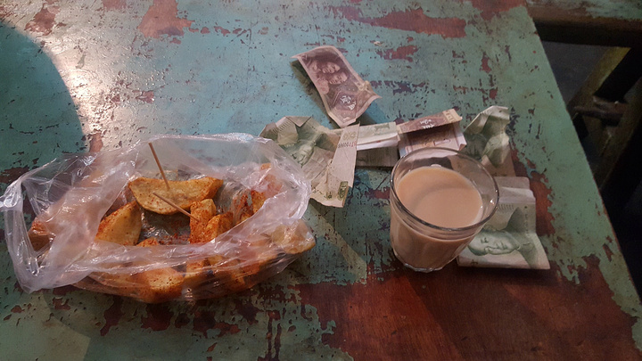 光明琼甜茶馆的甜茶,八毛钱一杯,炸土豆3块一份
