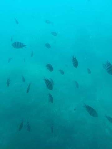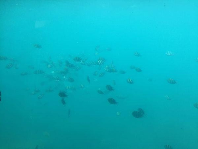 可怜的是由于大姨妈来了水上项目全体不能玩,只能在海边坐坐走走,拍几张照片,还有就是坐海底船去海底游了一圈。海底世界的票是在蚂蜂窝上买的,比当场买便宜个好像20块,但要等一个小时才能上船。上船之后去珊瑚礁保护区看看海底的鱼、珊瑚和不知名的海底生物。海底的世界很丰富,我当时被惊呆了,有很多叫不上名字的热带鱼群和海底生物,我是个海洋知识的匮乏者,认识的只有水母、珊瑚,其他的一概叫不出名字,丢脸。。。