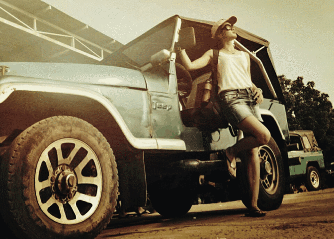 没有窗户的吉普,很是有趣,忍不住作为道具拍照。