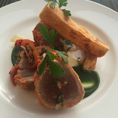 金枪鱼排,太大份了,吃不完的啊,很鲜嫩!!国内的金枪鱼都是碎的有木有 这么大颗的着实少见