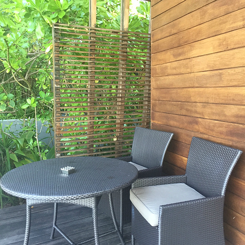 我们住的是1号沙屋,离码头和生活区非常近,很方便,在这里我们将住3天,然后搬到水屋!后面的浴室,卫生间,洗漱间,外面有淋浴和浴缸