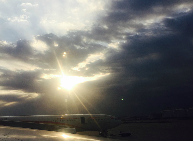 机上只有我们俩是黄种人,那种感觉怎么说呢,很国际