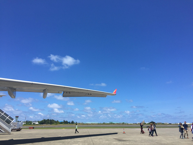JD455 6:55起飞 所以三点出发去机场,想换个好点的位置,可是国人去的更早有木有~~我们的飞机是空客A330-200 两边2人座,中间4人座,经济仓31和41排是安全出口,喜欢宽敞空间的可以换这个位置。机翼大概从35到39,给大家个参考,我们坐的39,机翼最后的位置,能看到风景,离卫生间很近, 八小时到马累国际机场。到了之后填入境单,过关,取行李,出去就会看到各个岛的小黑举着牌子,找到Park Hyatt Hadahaa ,小黑热情的和我们打招呼握手,帮我们拿行李,问我们是不是第一次来,度蜜月吗,是不是很热,问我们来自哪里……总之蛮热情的,我们亲切的表达了这里风景的美丽以及天气太特么热了,毕竟北京出发的时候只有十几度!因为哈达哈在赤道上,离马累比较远,所以需要在乘坐小飞机和快艇上岛!小黑带我们去办小飞机的登机牌,帮忙托运行李,告知我们起飞时间,带我们去休息室,我热情的给了2刀,因为当天他单独接待的我们,如果这个时候他同时接很多客人,可以不给小费没关系。所以当天从被接机到上岛,我俩享受的都是管家式服务。