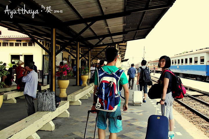 我们原计划是到了大城就买好第二天到清迈的火车票,结果票卖完了,工作人员让我们第二天再过来看有木有临时退票的,但是4张退票的概率不敢想,后来工作人员告诉我们说可以去汽车站看看有木有车票,还给了我们一张地图,告诉我们位置。因为我们在大城住的度假村和汽车站是两个方向,我们又都带着很多行李,所以商量后决定两个人带着行李去住的地方,两个人去车站看有没有第二天的票,就分头行动了。