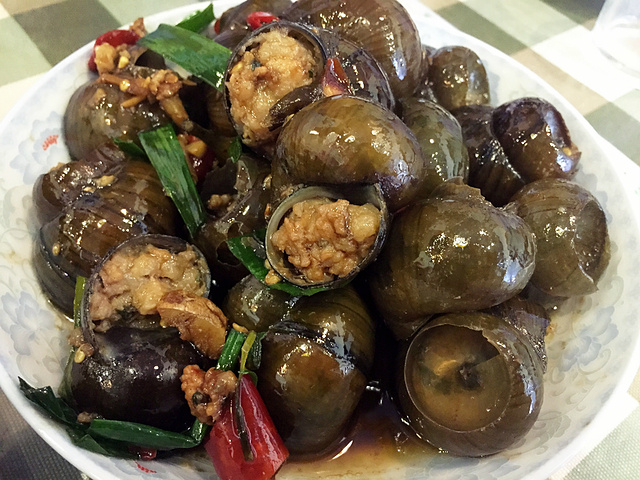 田螺酿,35/份,每个都超大,里面塞了田螺肉混合猪肉,味道好吃又特别。