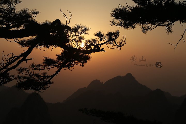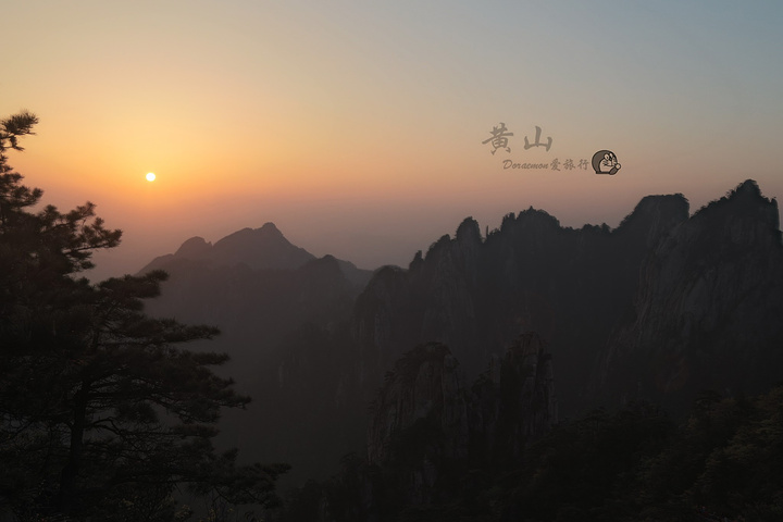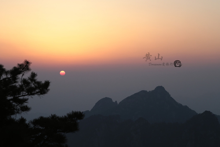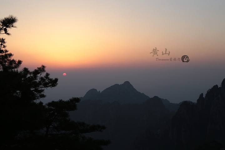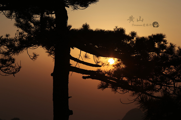 在黄山看日出,一定要早起喔,不然好位置都被占据。由于我住在北海宾馆,宾馆斜对面的路通往狮子峰,步行至峰顶大概20分。四点钟左右摸黑爬上峰顶,一定要带上手电筒或头灯,山路比较黑。由下至上狮子峰有三个地方可以看日出,分别是清凉台、猴子观月和峰顶;越往上爬,人相对少一些,景观也开阔些。峰顶旁边有一条小路,位置较平缓,有松树的衬托,可以拍出具有黄山特点日出。