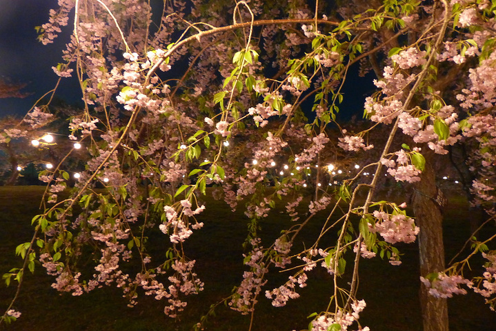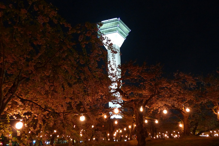 樱花季期间,五稜郭塔旁边的赏樱地会有夜樱照明,到晚上十点。