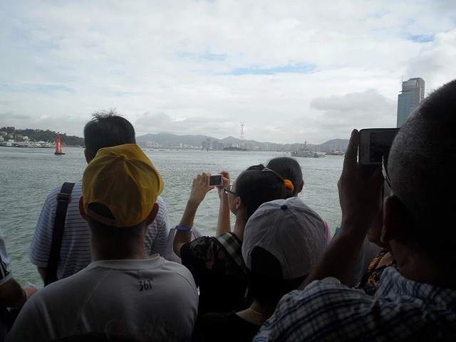在渡轮上,前往鼓浪屿的路上,太矮只能拍前面大叔大妈的头了,想感受一下海的汹涌澎湃都挤不过去。