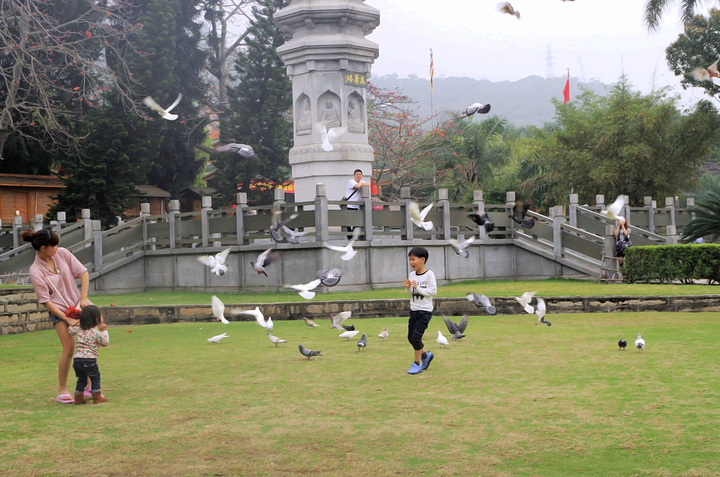 闻鸽起舞,南普陀里有很多的鸽子,很友好,不怎么怕人,很多父母都会带着孩子给鸽子喂食。有些调皮的熊孩子经常会突然吓一下鸽子们。然后鸽子会四处飞舞。