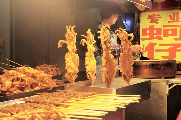 10元6串的鱿鱼串,我弟爱吃这些垃圾食品,但是确实是挺好吃的哈哈。在小吃街里随处可见。
