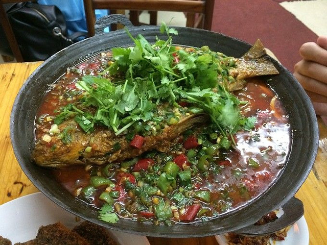 根据网上的推荐及导游所指的方向找到胡师傅三下锅,他家生意爆好