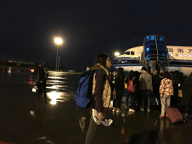 小插曲..飞机故障,一群人在停机坪寒风中等登机..但是确变成有机会近距离看到停靠的飞机...准备坐接驳车回登机楼等时,又通知可以登机了..延误了半小时左右