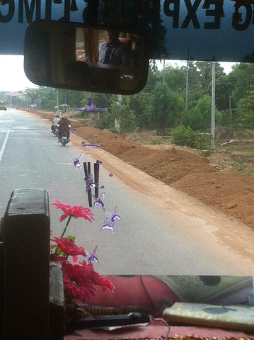 中途停车休息,下车逛逛,路边有卖昆虫小吃。我们车上一个当地人就买了一包在车上吃,我实在没有勇气尝试