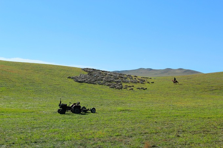牧人,羊群,马。
